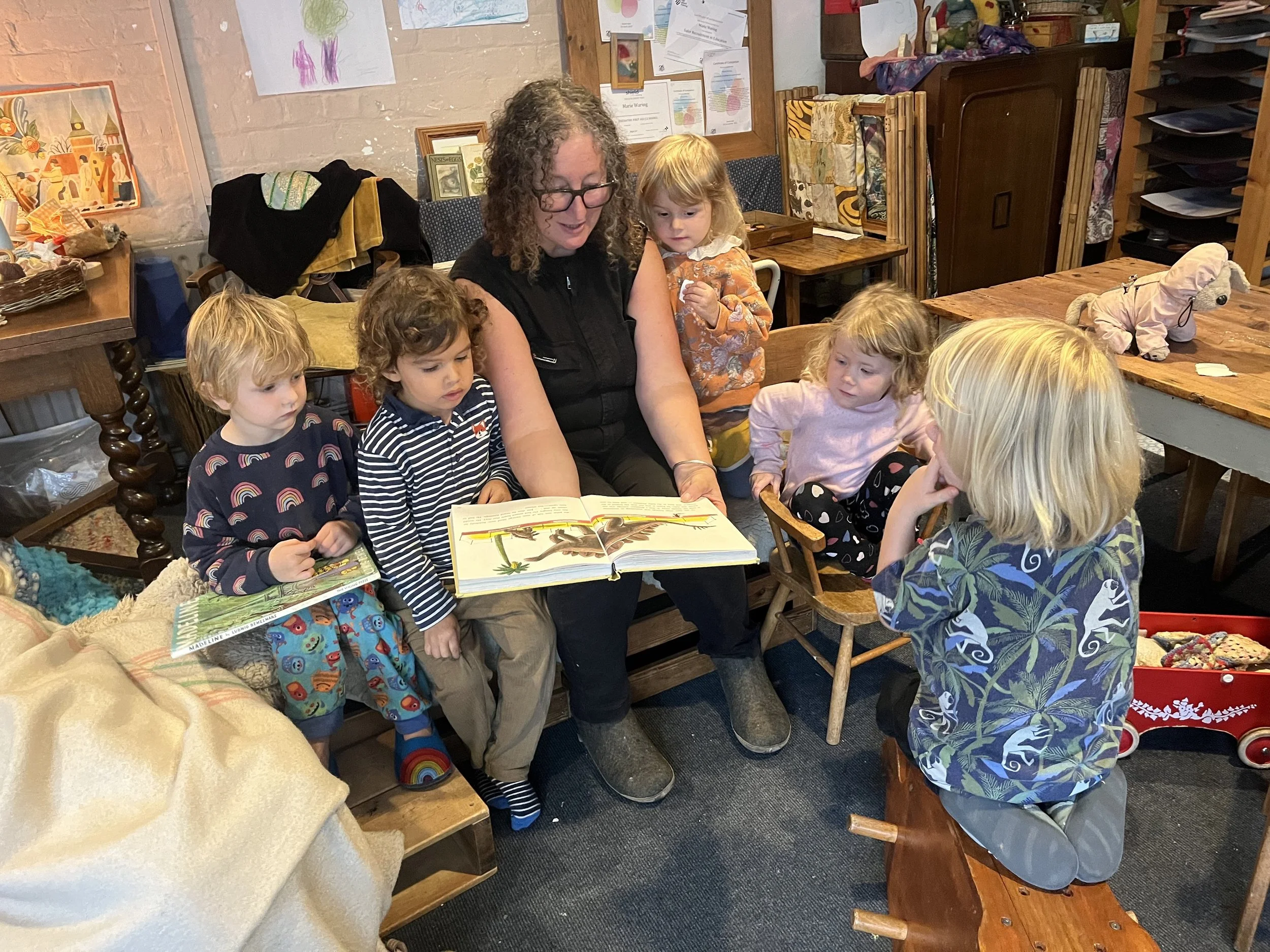 Week 2 The three year olds often settle when listening to a book being read, then they get back into work or play.