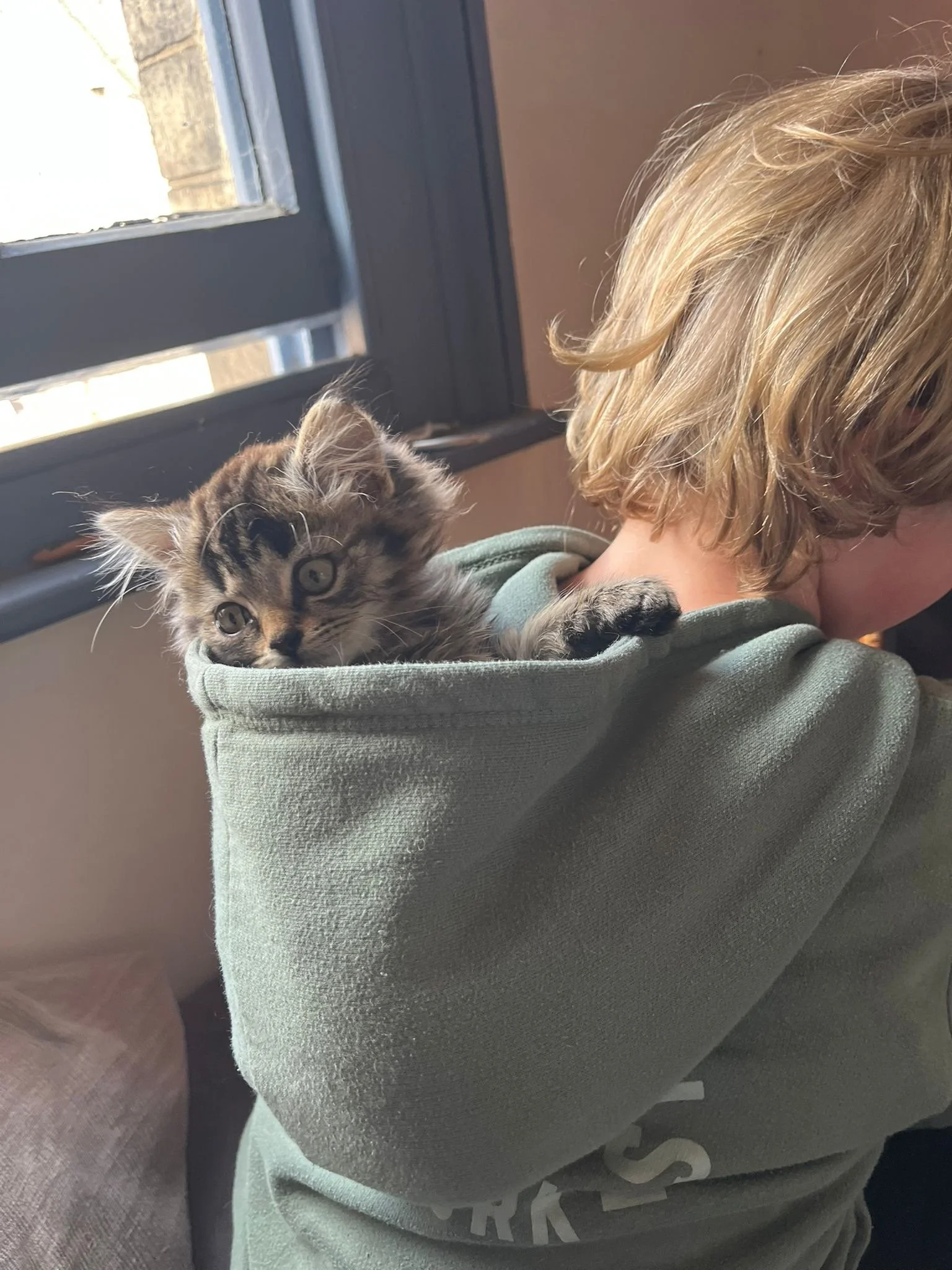 Often the leavers need a meet up in order to prepare for the transition to school. Milo popped in to meet the kitten.